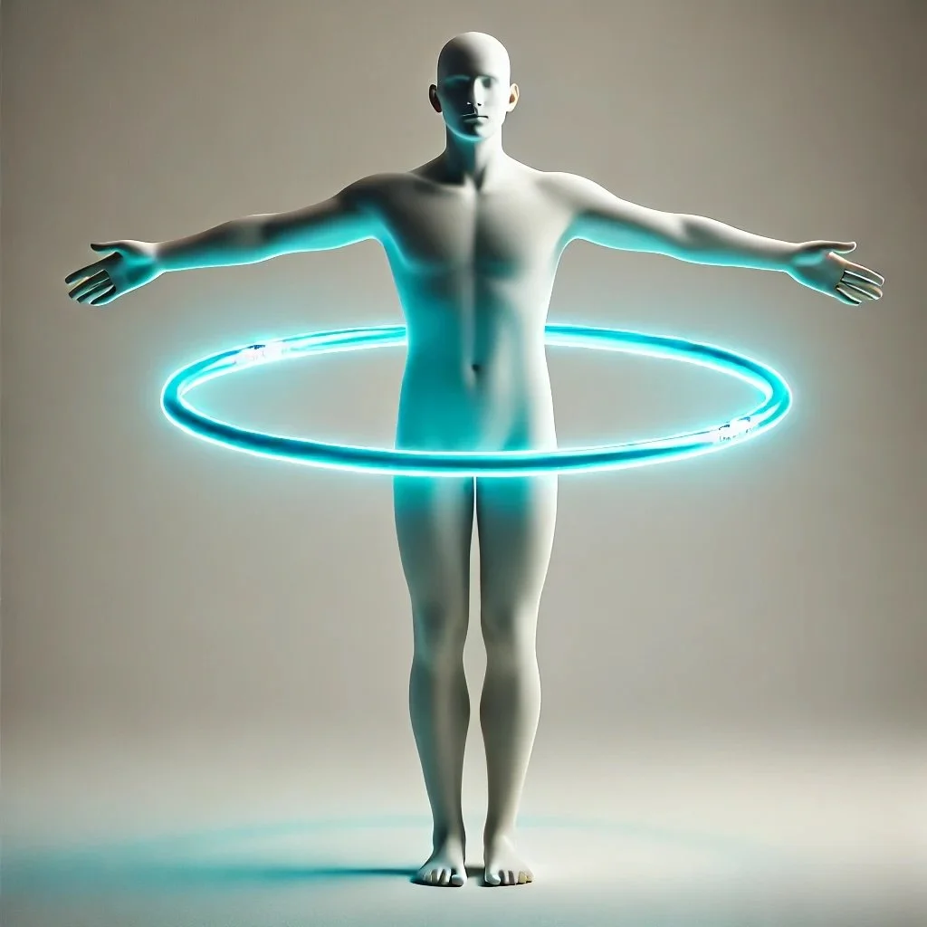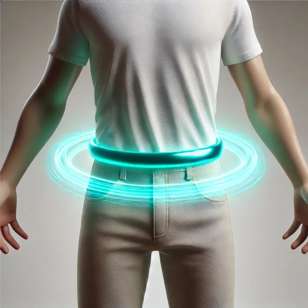 Für mehr “Feeling” lege dir den Ring nahe an deinen Körper, wie einen Gürtel, der eng an deiner Haut entlang nach oben und unten gleitet.